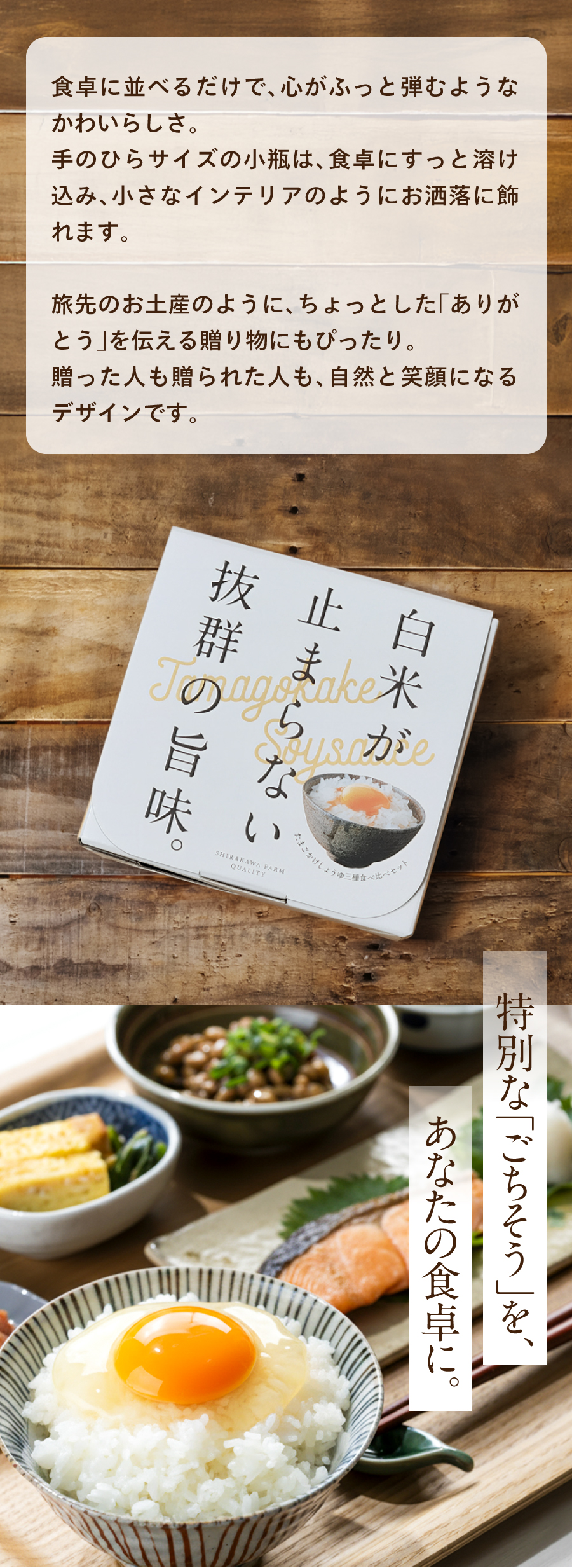たまごかけしょうゆ三種食べ比べセット