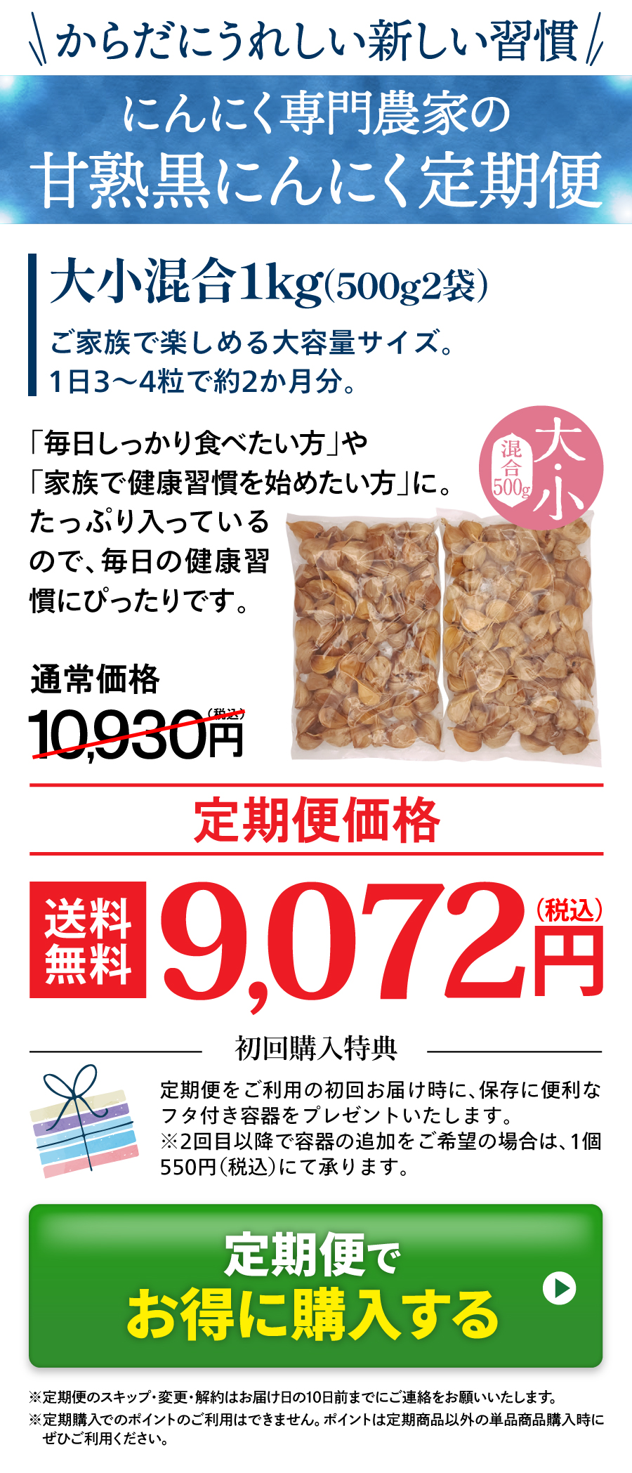 【定期便】白川農場の甘熟黒にんにく大小混合1kg(500g×2)